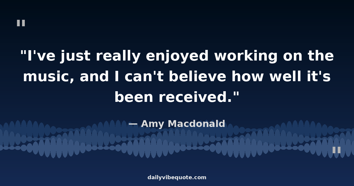 "I've just really enjoyed working on the music, and I can't believe how well it's been received."