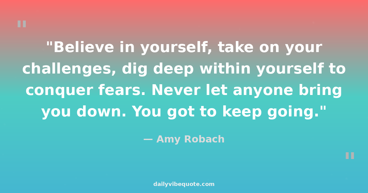 "Believe in yourself, take on your challenges, dig deep within yourself to conquer fears. Never let anyone bring you down. You got to keep going."