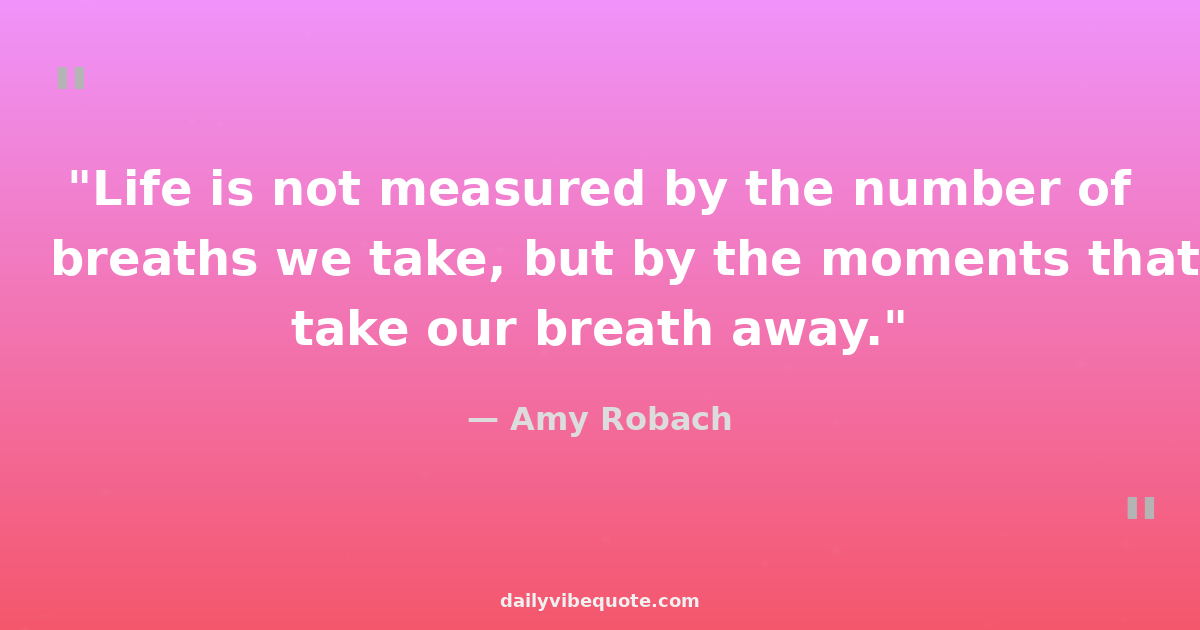 "Life is not measured by the number of breaths we take, but by the moments that take our breath away."
