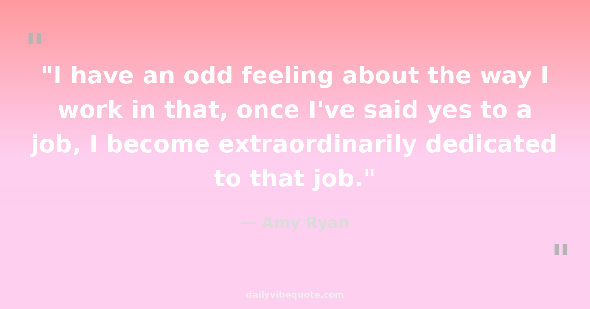 "I have an odd feeling about the way I work in that, once I've said yes to a job, I become extraordinarily dedicated to that job."