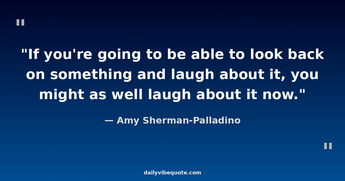 "If you're going to be able to look back on something and laugh about it, you might as well laugh about it now."