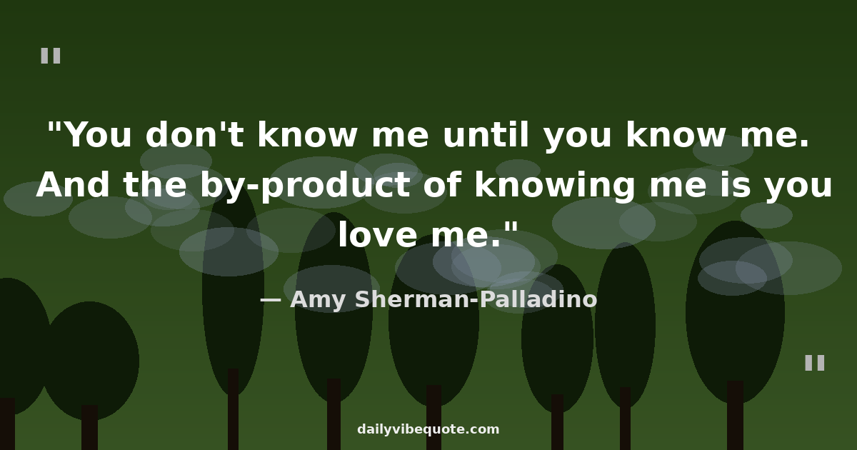 "You don't know me until you know me. And the by-product of knowing me is you love me."