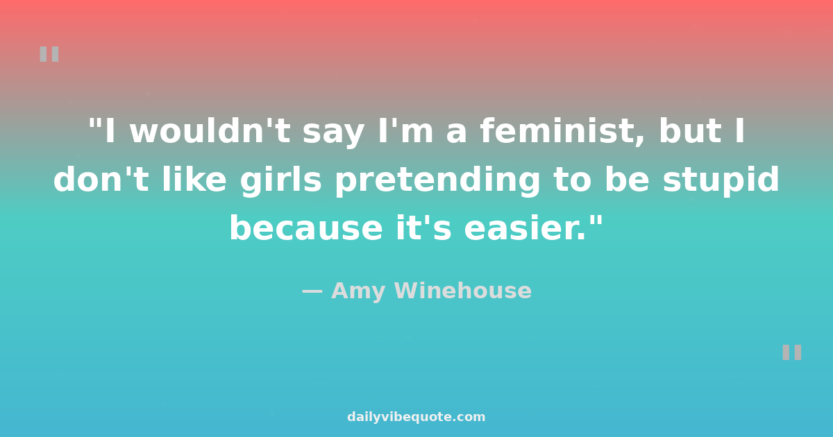 "I wouldn't say I'm a feminist, but I don't like girls pretending to be stupid because it's easier."