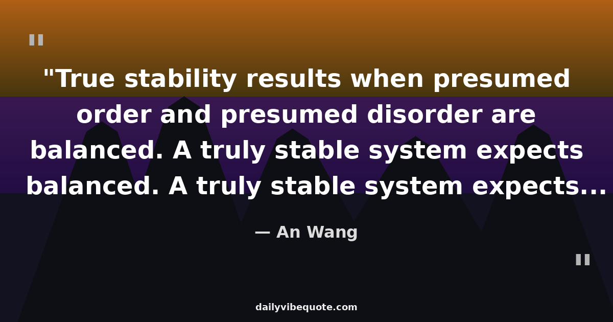 "True stability results when presumed order and presumed disorder are balanced. A truly stable system expects the unexpected, is prepared to be disrupted, waits to be transformed."