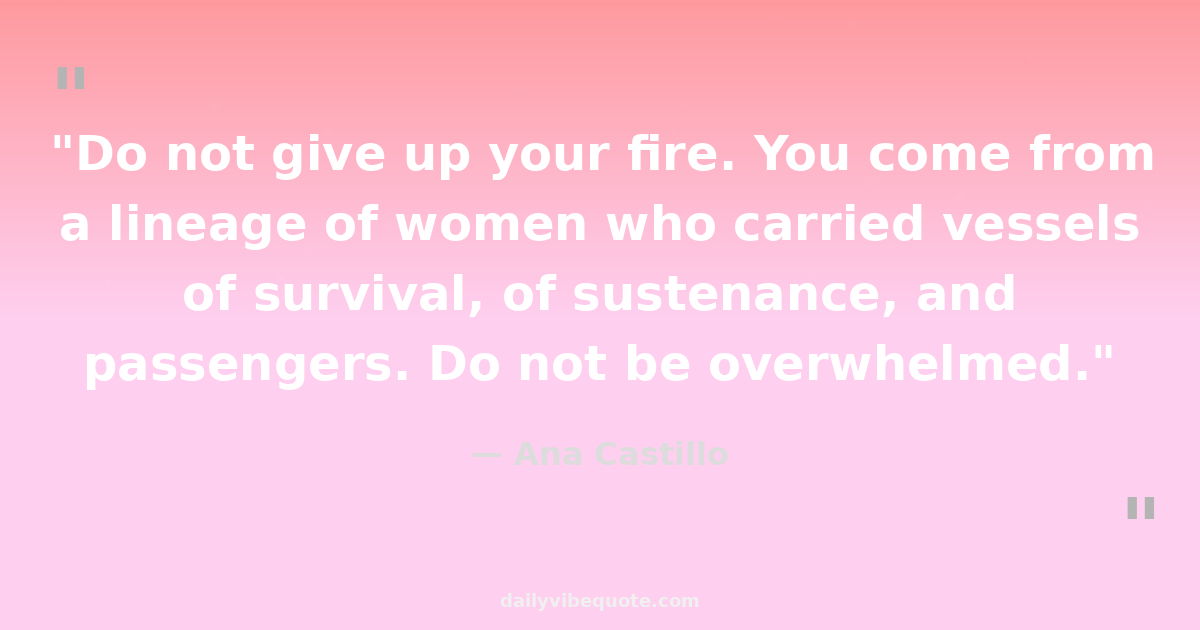 "Do not give up your fire. You come from a lineage of women who carried vessels of survival, of sustenance, and passengers. Do not be overwhelmed."