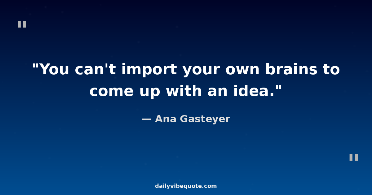 "You can't import your own brains to come up with an idea."