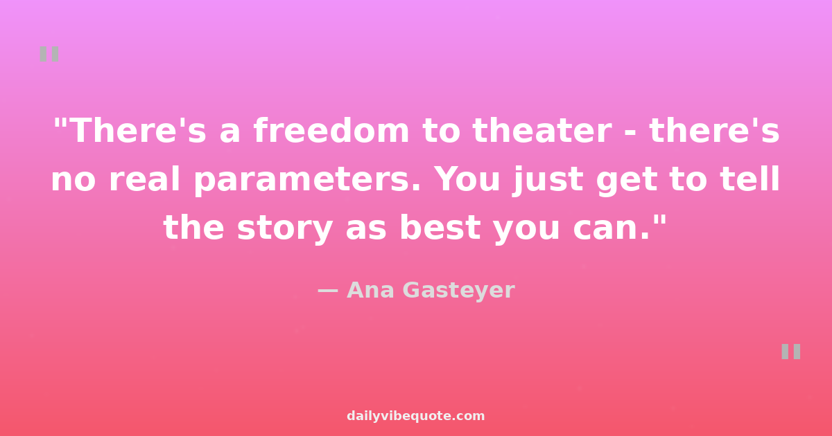 "There's a freedom to theater - there's no real parameters. You just get to tell the story as best you can."
