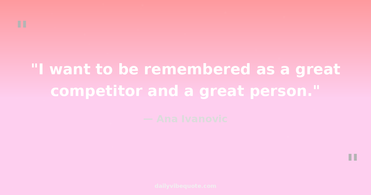 "I want to be remembered as a great competitor and a great person."