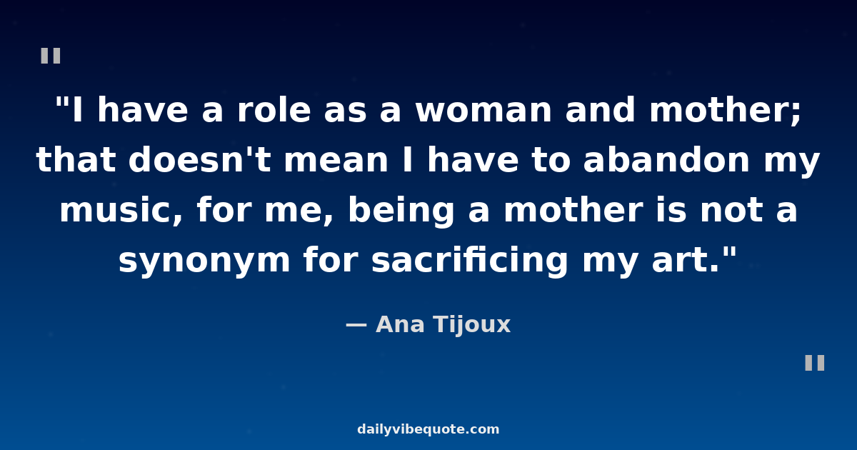 "I have a role as a woman and mother; that doesn't mean I have to abandon my music, for me, being a mother is not a synonym for sacrificing my art."