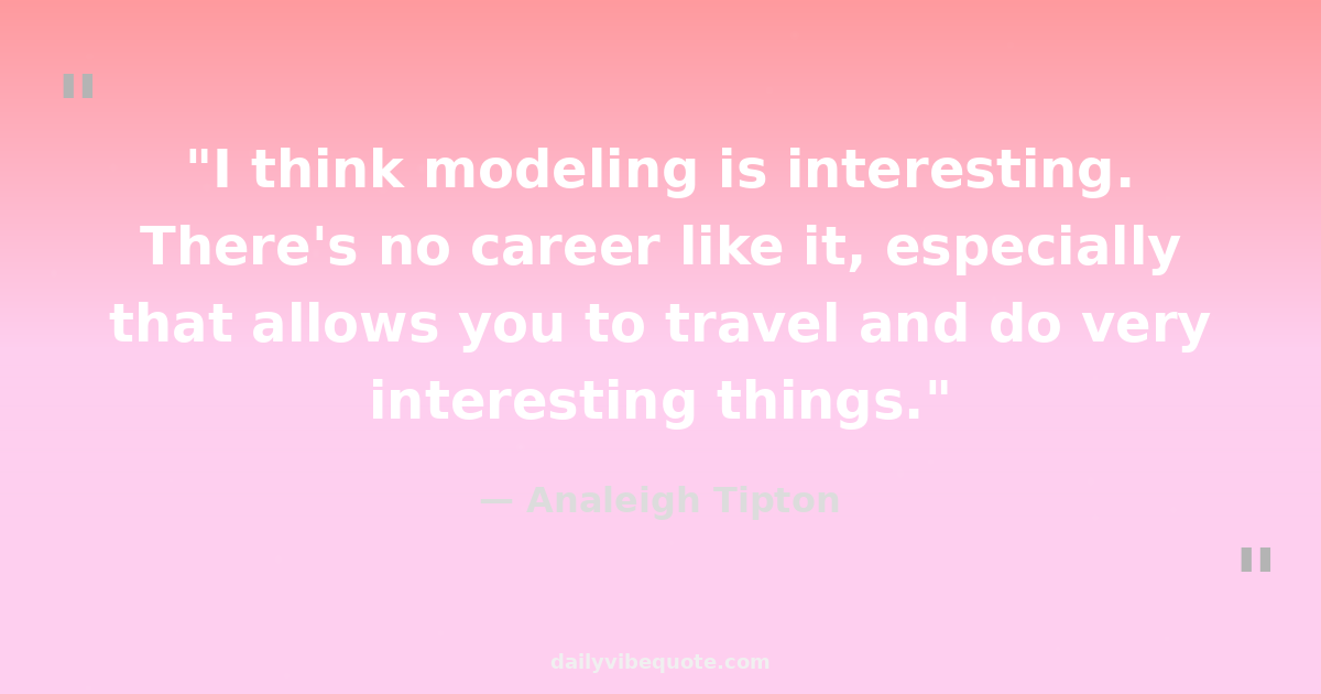 "I think modeling is interesting. There's no career like it, especially that allows you to travel and do very interesting things."