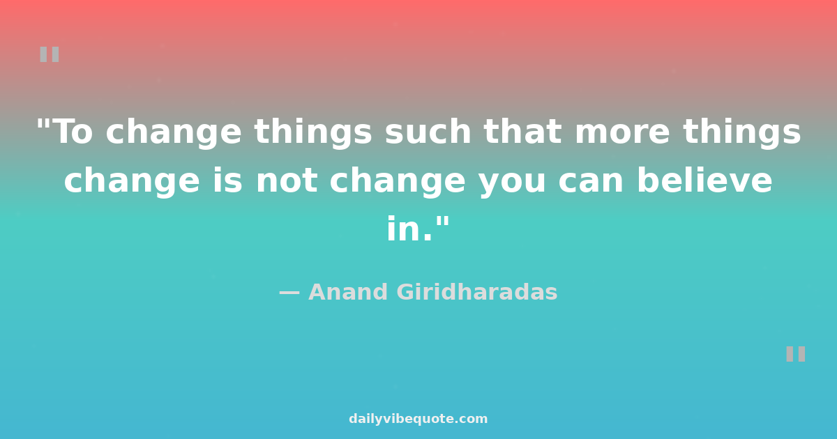 Anand Giridharadas is an American author and former columnist for The New York Times. Born in 1981, he has become known for his insightful writings on politics, culture, and social issues in the United States. Giridharadas is the author of several books, including 'Winners Take All: The Elite Charade of Changing the World' and 'The True American: Murder and Mercy in Texas.' He often appears as a political commentator on various media outlets, providing a critical perspective on the intersection of power and privilege.