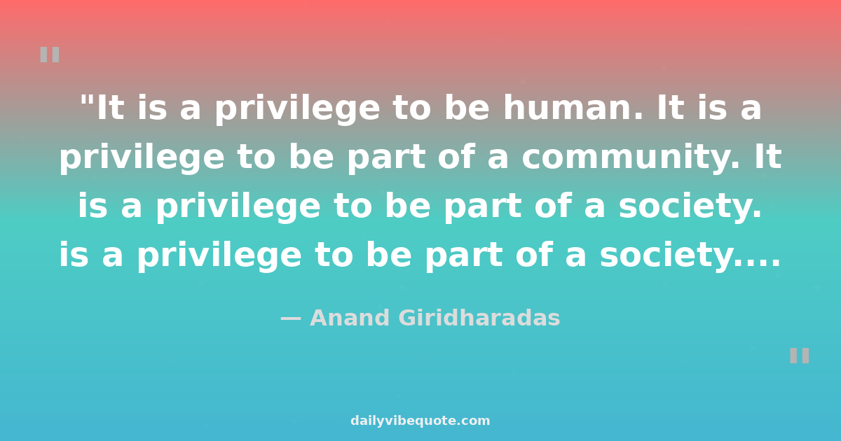 "It is a privilege to be human. It is a privilege to be part of a community. It is a privilege to be part of a society. And I fear that we have become forgetting creatures, focus creatures, alone creatures."