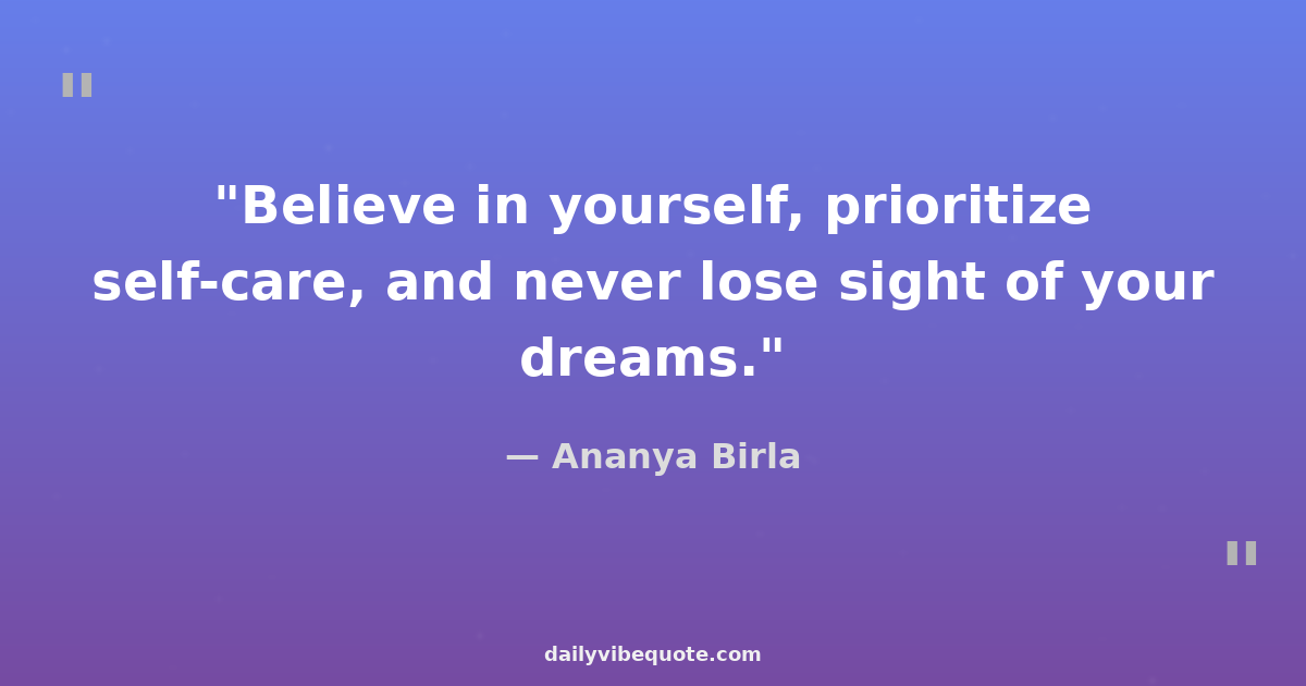 "Believe in yourself, prioritize self-care, and never lose sight of your dreams."