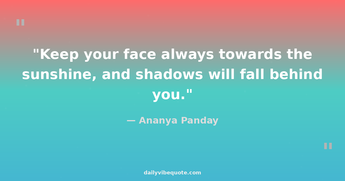 "Keep your face always towards the sunshine, and shadows will fall behind you."