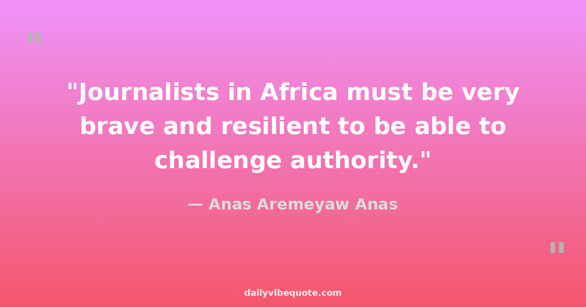 "Journalists in Africa must be very brave and resilient to be able to challenge authority."