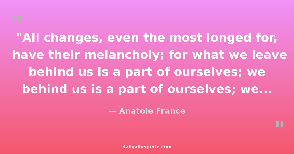 "All changes, even the most longed for, have their melancholy; for what we leave behind us is a part of ourselves; we mus..."