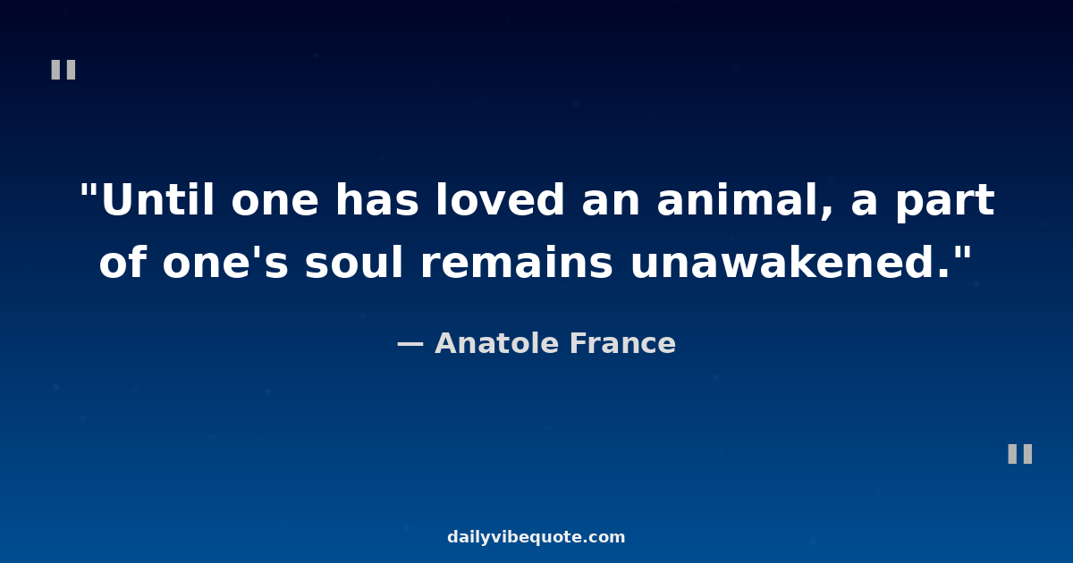 "Until one has loved an animal, a part of one's soul remains unawakened."