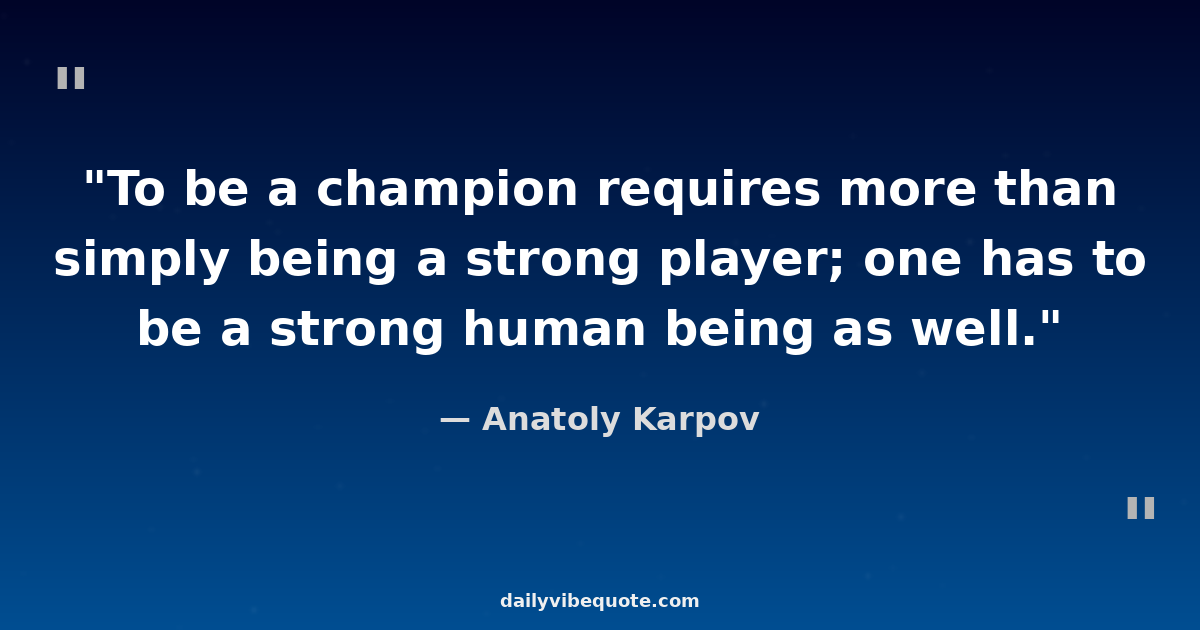 "To be a champion requires more than simply being a strong player; one has to be a strong human being as well."