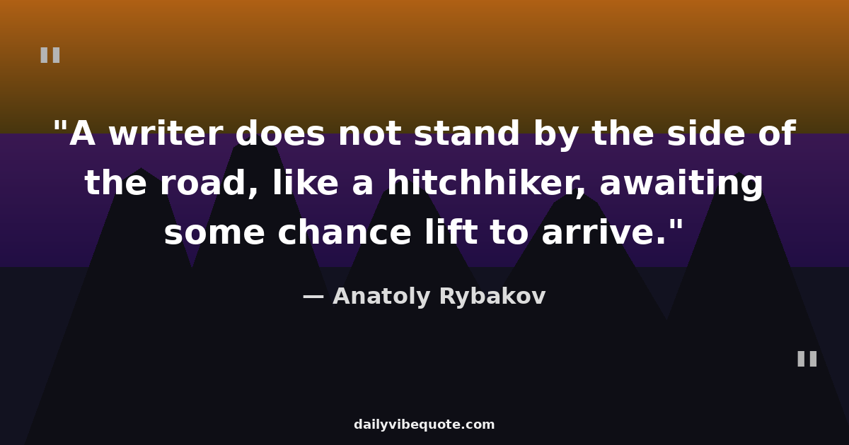 "A writer does not stand by the side of the road, like a hitchhiker, awaiting some chance lift to arrive."