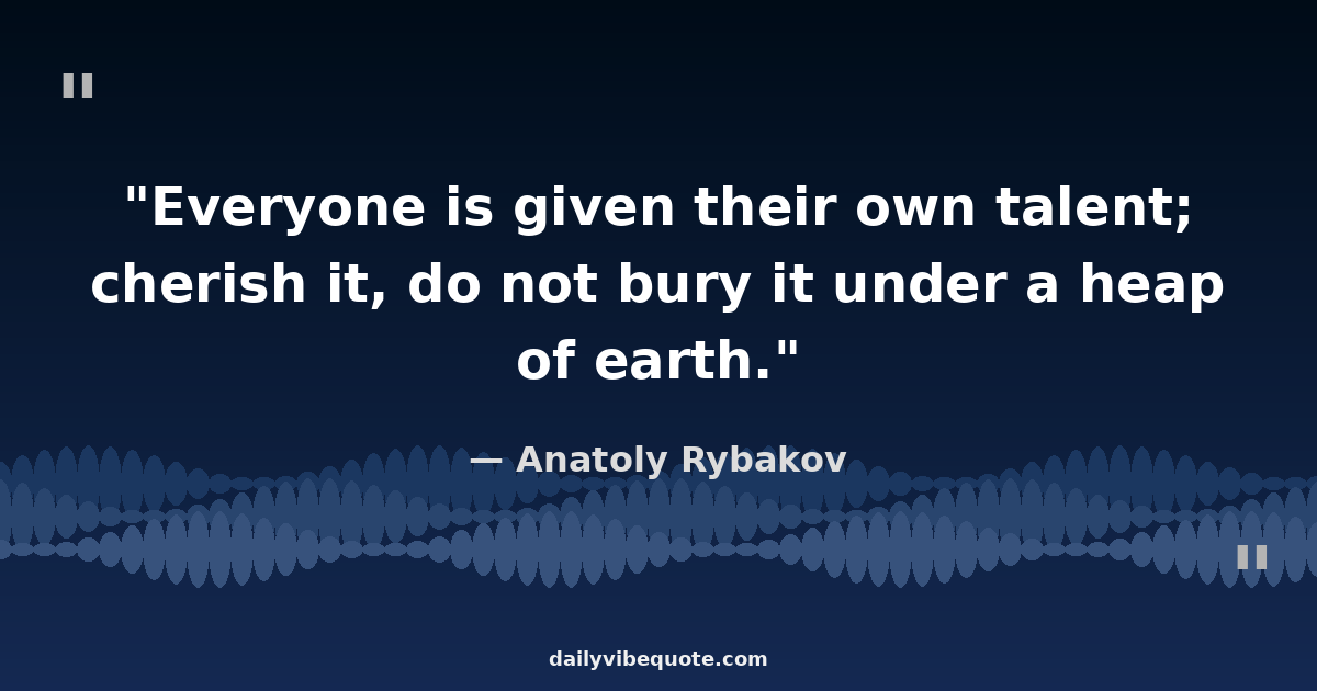 "Everyone is given their own talent; cherish it, do not bury it under a heap of earth."