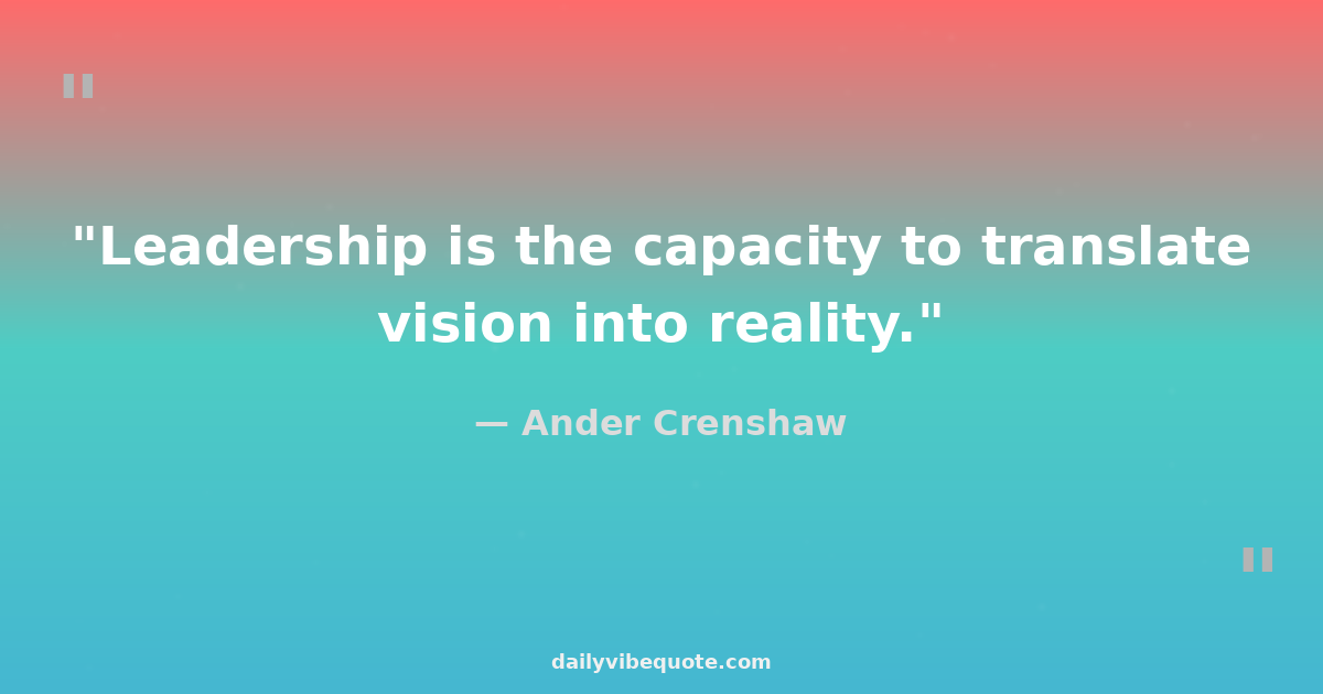 "Leadership is the capacity to translate vision into reality."