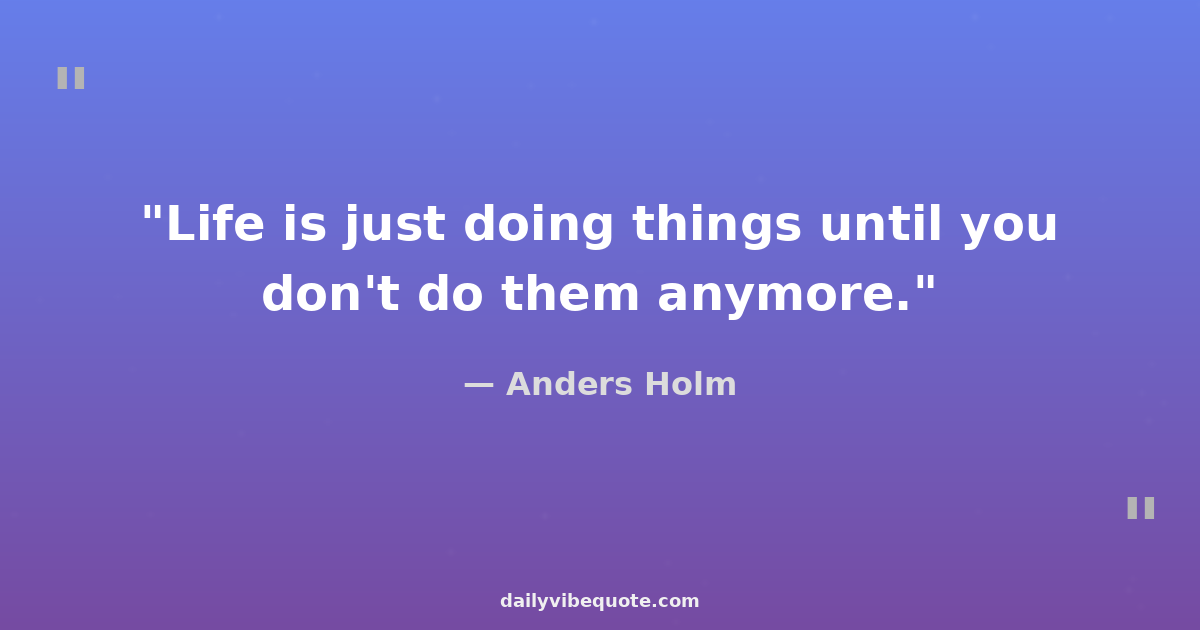 "Life is just doing things until you don't do them anymore."