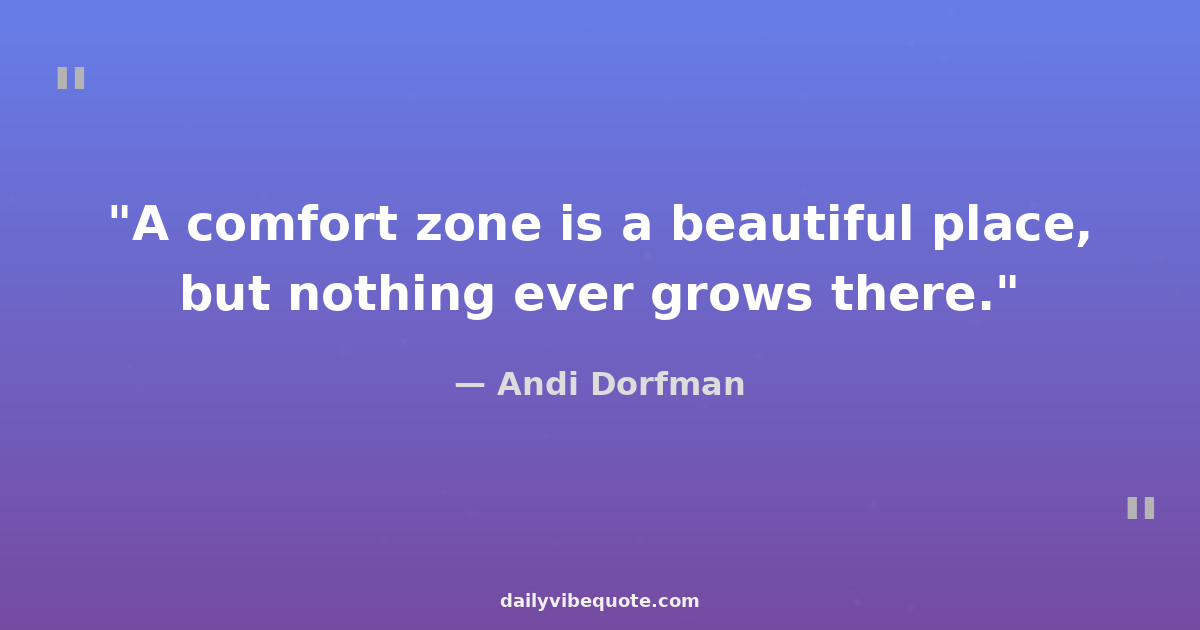 "A comfort zone is a beautiful place, but nothing ever grows there."