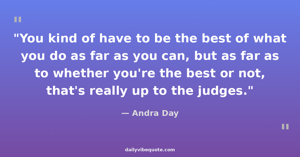 "You kind of have to be the best of what you do as far as you can, but as far as to whether you're the best or not, that's really up to the judges."
