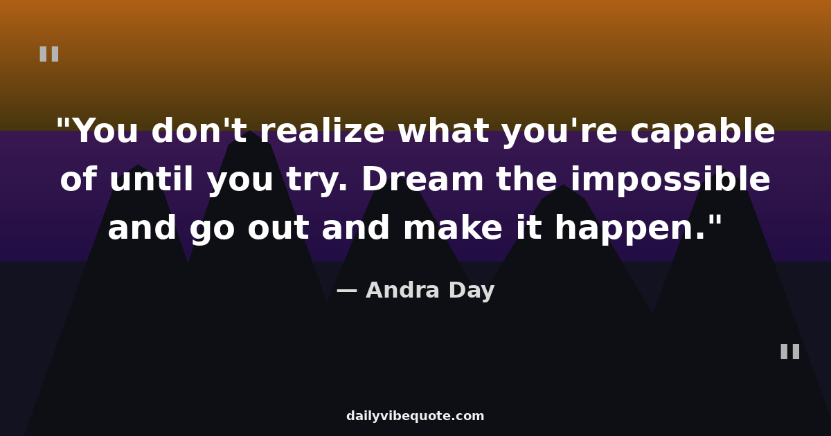 "You don't realize what you're capable of until you try. Dream the impossible and go out and make it happen."