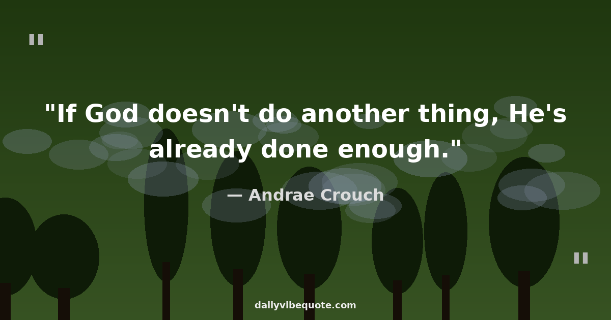 Andrae Crouch (1942-2015) was an American gospel singer, songwriter, arranger, and producer. Often referred to as 'the father of modern gospel music,' he played a pivotal role in the contemporary Christian music movement. Crouch infused traditional gospel music with elements of jazz, pop, and R&B to create a distinctive sound that resonated with a wide audience. Throughout his career, he won multiple Grammy Awards and was known for his powerful vocals and heartfelt lyrics.
