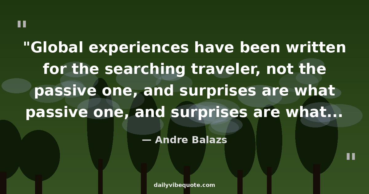 "Global experiences have been written for the searching traveler, not the passive one, and surprises are what should help us to go further instead of frustrating us."