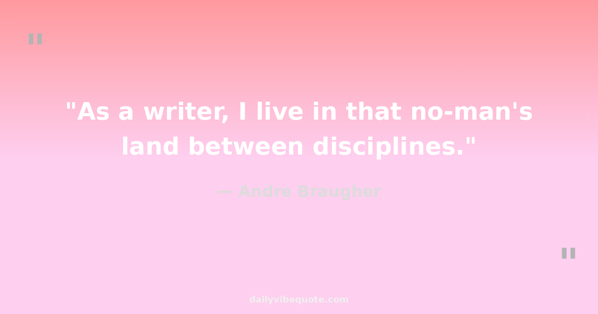 "As a writer, I live in that no-man's land between disciplines."