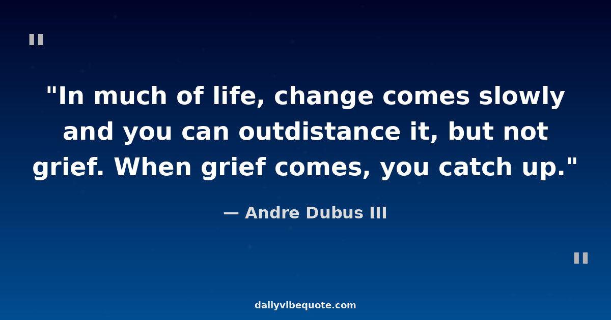 "In much of life, change comes slowly and you can outdistance it, but not grief. When grief comes, you catch up."