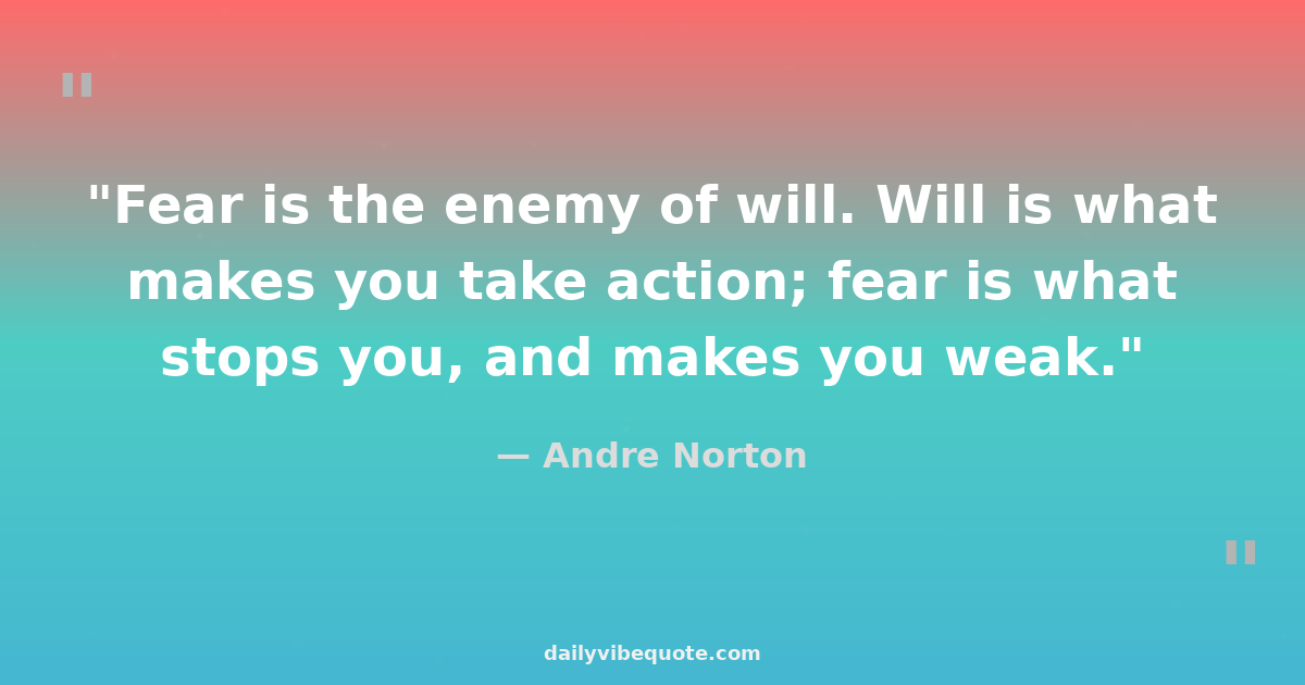 "Fear is the enemy of will. Will is what makes you take action; fear is what stops you, and makes you weak."
