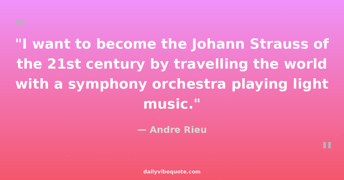 "I want to become the Johann Strauss of the 21st century by travelling the world with a symphony orchestra playing light music."