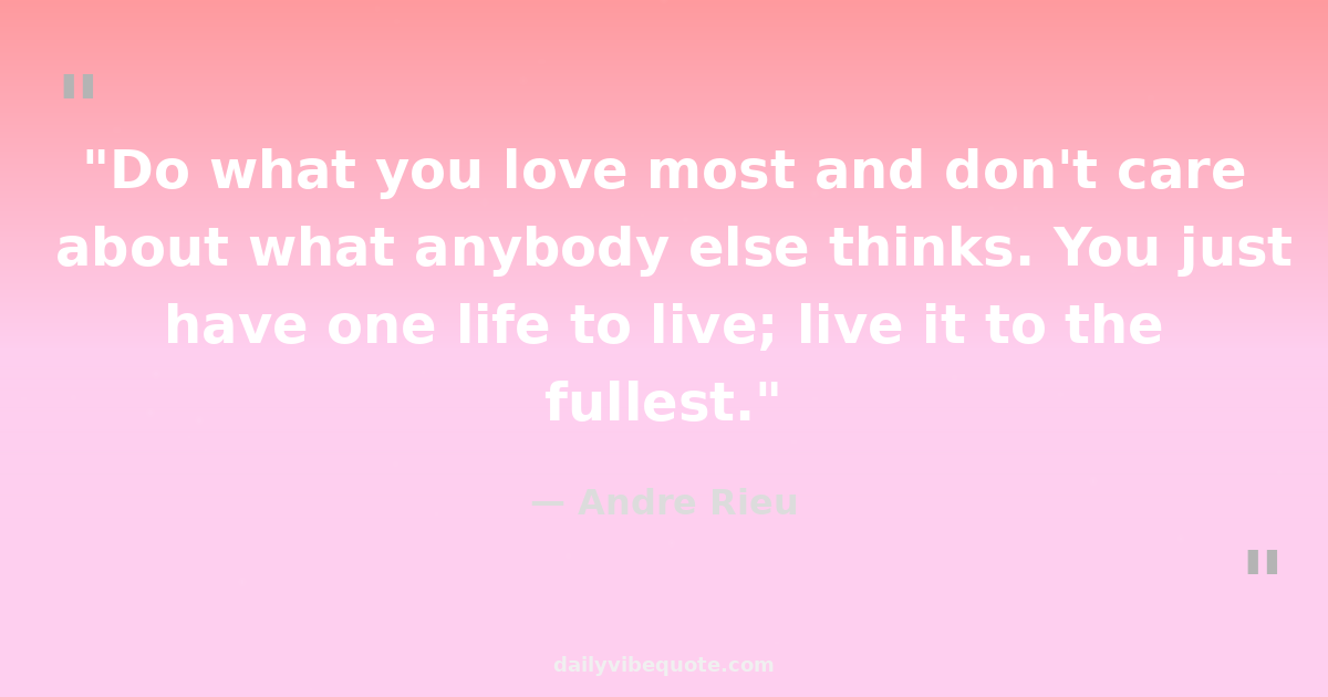 "Do what you love most and don't care about what anybody else thinks. You just have one life to live; live it to the fullest."