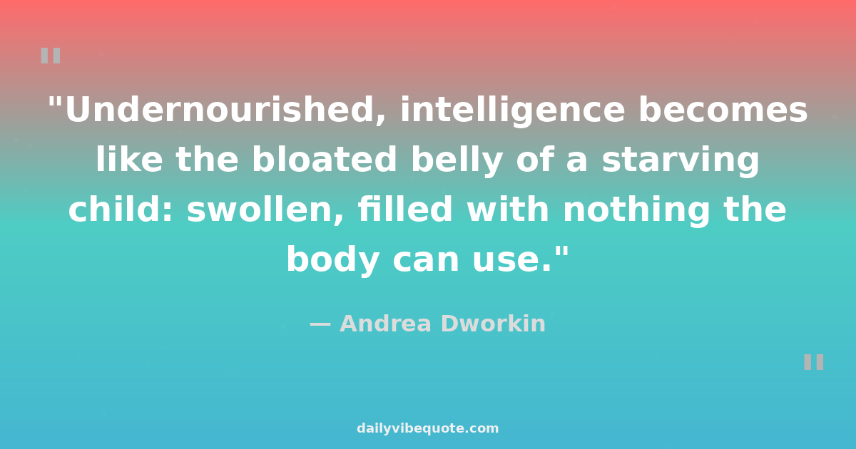 "Undernourished, intelligence becomes like the bloated belly of a starving child: swollen, filled with nothing the body can use."