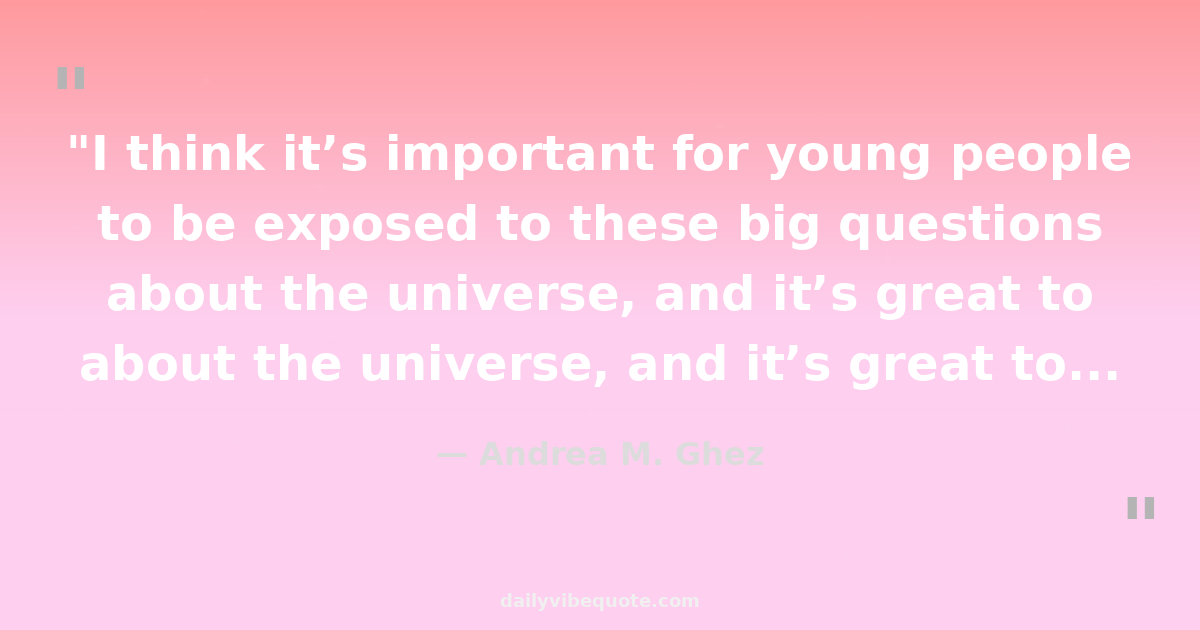 "I think it’s important for young people to be exposed to these big questions about the universe, and it’s great to provide them with some tools to start exploring them."