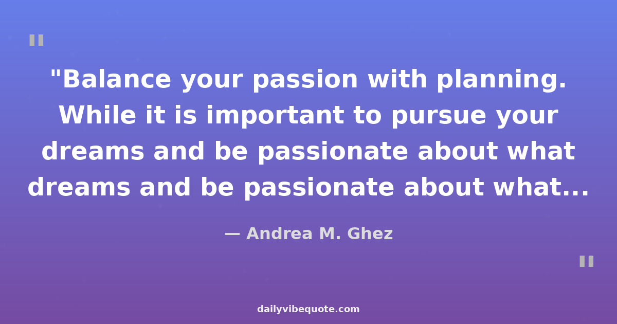 "Balance your passion with planning. While it is important to pursue your dreams and be passionate about what you’re doing, it’s also crucial to have a game plan."