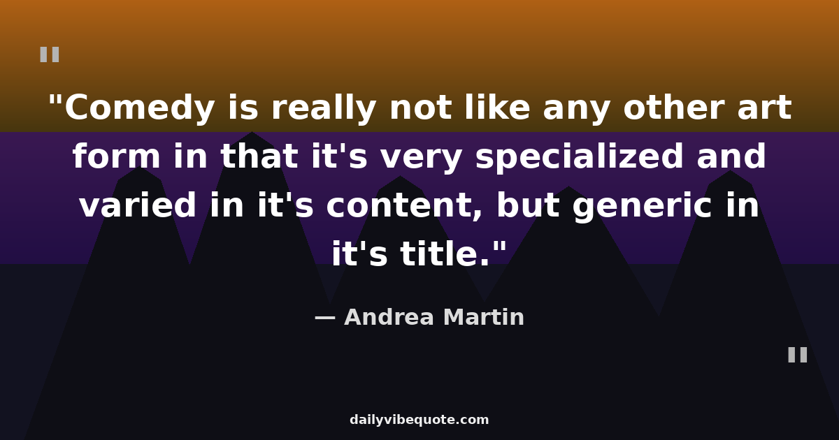 "Comedy is really not like any other art form in that it's very specialized and varied in it's content, but generic in it's title."