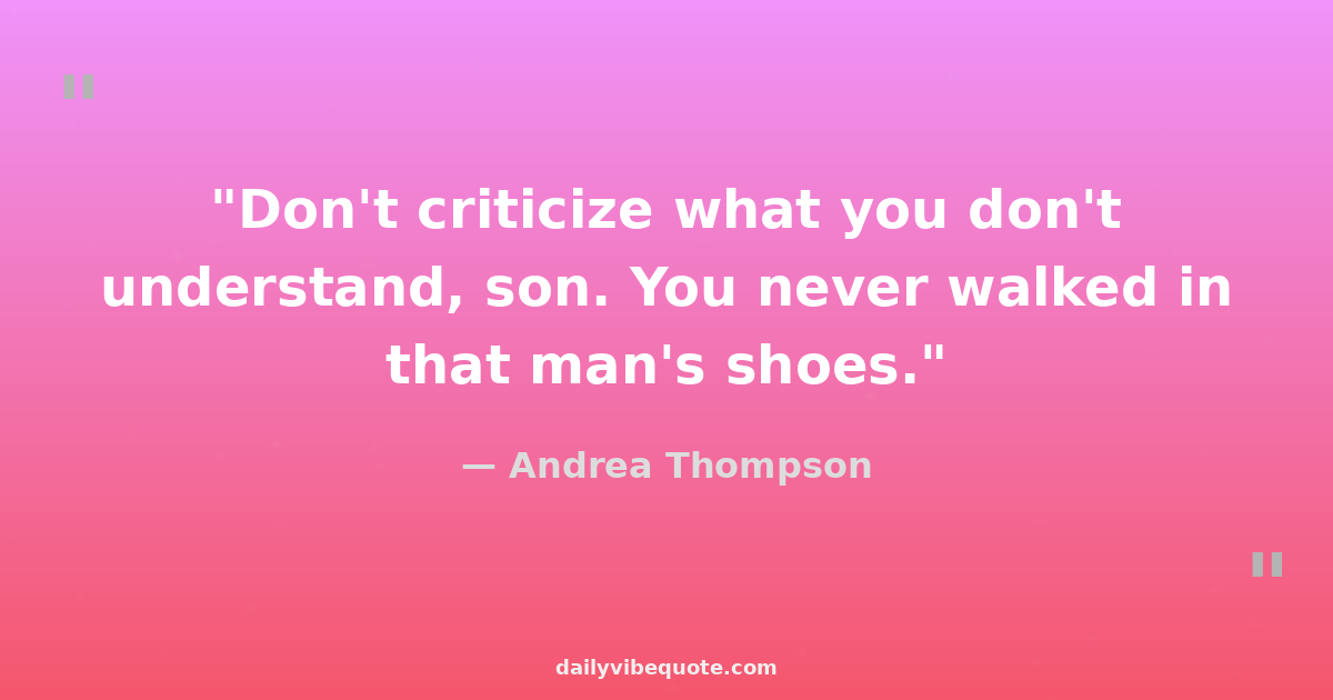 "Don't criticize what you don't understand, son. You never walked in that man's shoes."