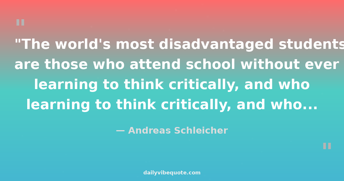 "The world's most disadvantaged students are those who attend school without ever learning to think critically, and who finish school without ever learning to believe in themselves."