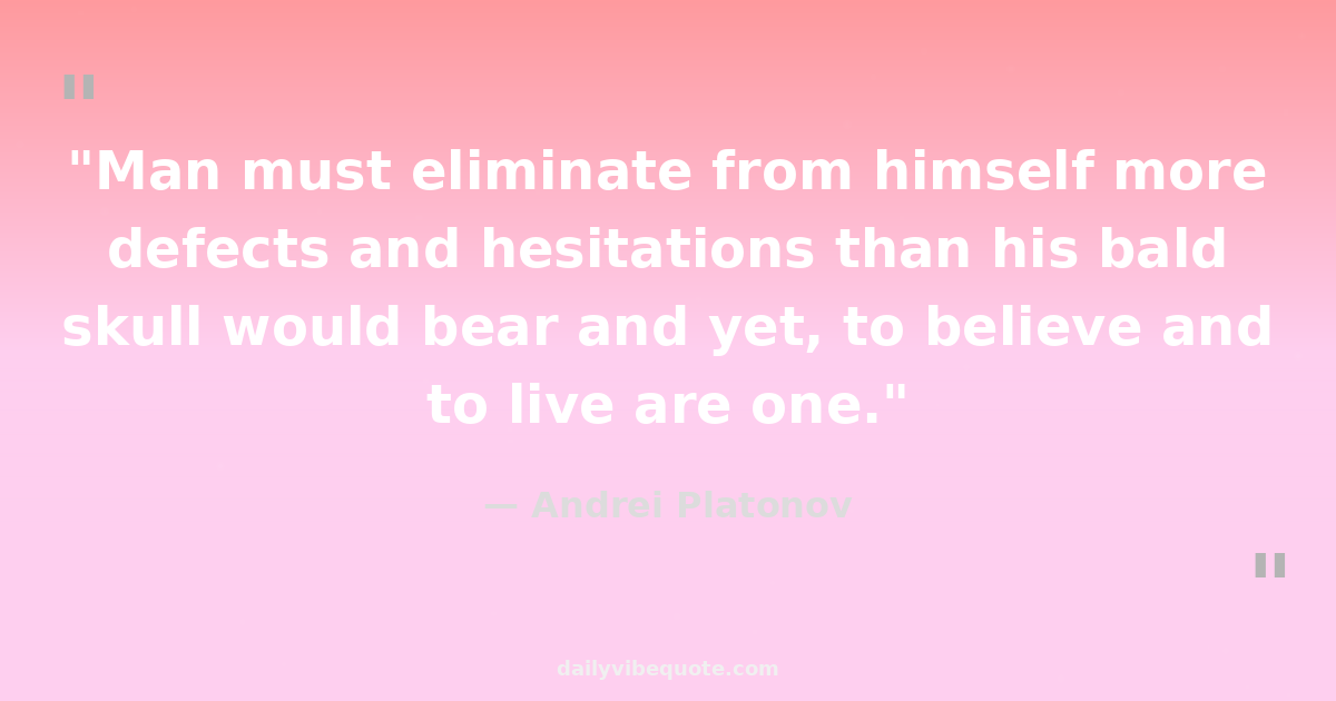 "Man must eliminate from himself more defects and hesitations than his bald skull would bear and yet, to believe and to live are one."