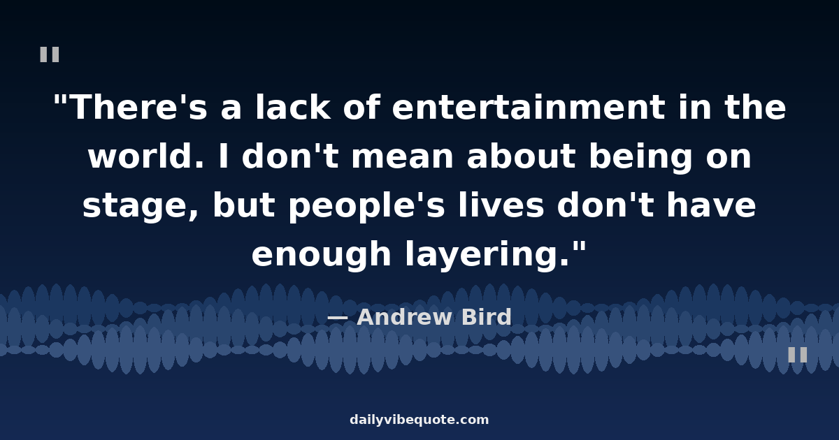 "There's a lack of entertainment in the world. I don't mean about being on stage, but people's lives don't have enough layering."