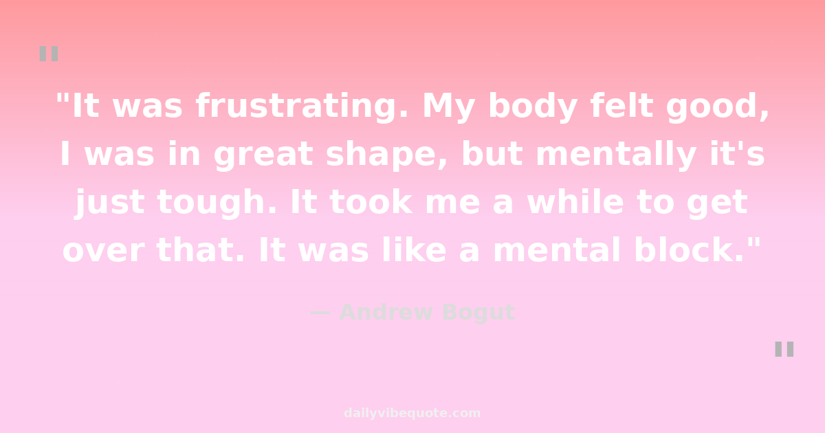 "It was frustrating. My body felt good, I was in great shape, but mentally it's just tough. It took me a while to get over that. It was like a mental block."