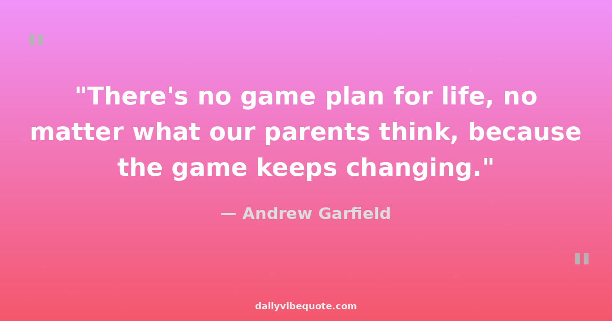 "There's no game plan for life, no matter what our parents think, because the game keeps changing."