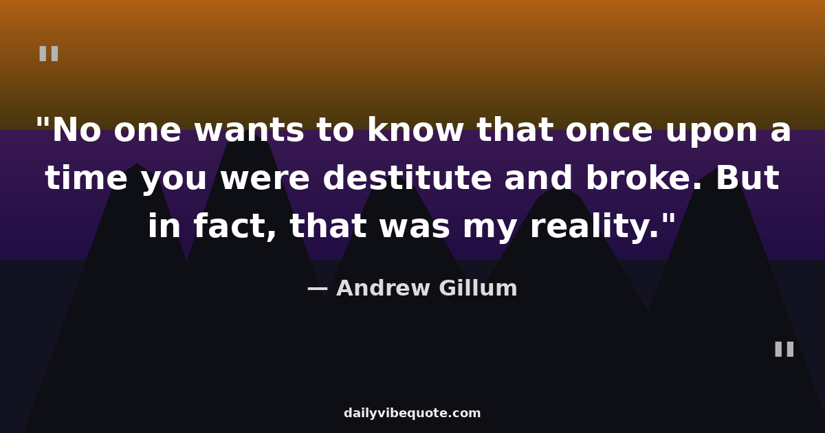"No one wants to know that once upon a time you were destitute and broke. But in fact, that was my reality."