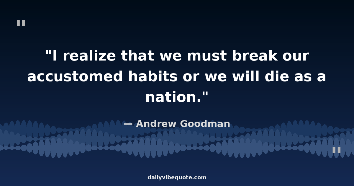 "I realize that we must break our accustomed habits or we will die as a nation."