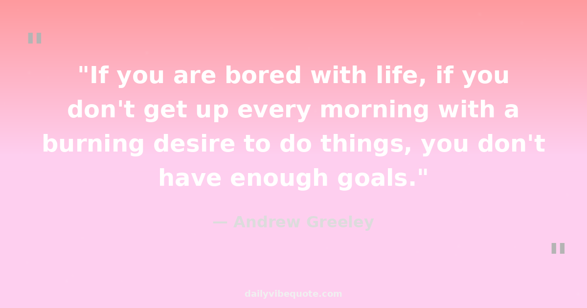 "If you are bored with life, if you don't get up every morning with a burning desire to do things, you don't have enough goals."