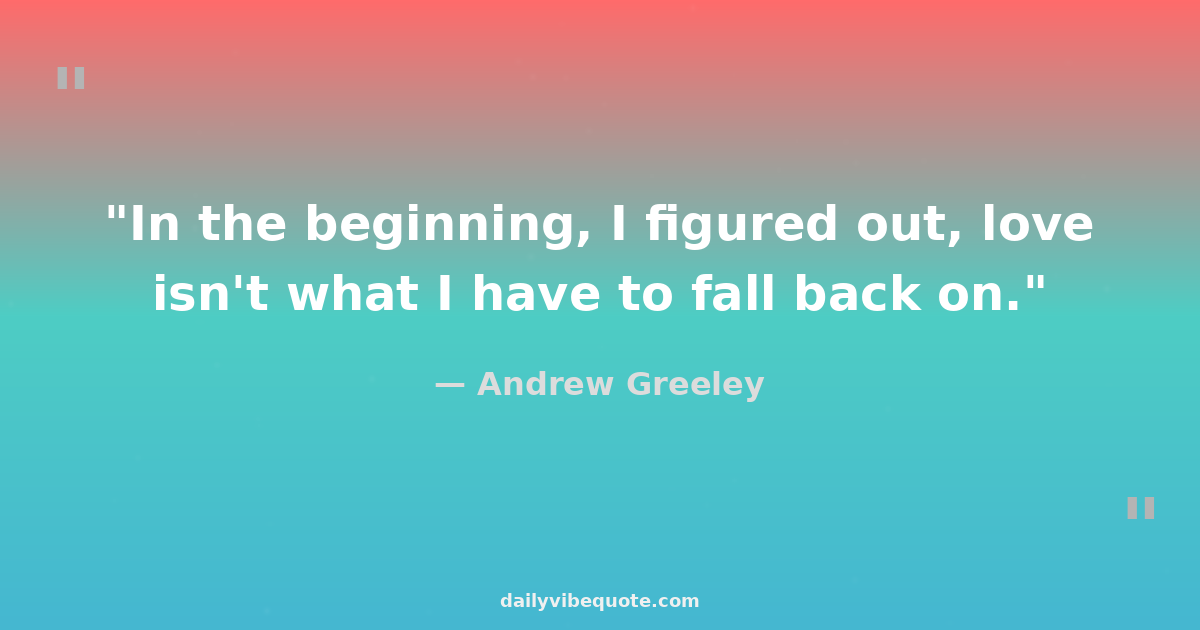 "In the beginning, I figured out, love isn't what I have to fall back on."